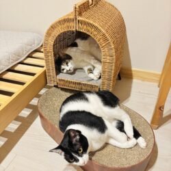 2匹でプロレス遊びをしていてくれるので無限体力の子猫に永久につきあわされることがないというメリットもあります。