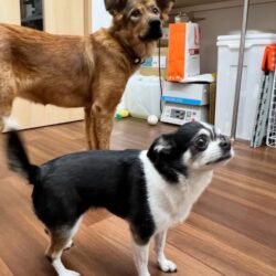人馴れの進んだ先住犬のいるお家に人馴れ修行に出ました。