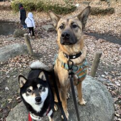 お散歩中に犬とのすれ違いはできるようになりましたが、犬同士の同居には向きません。